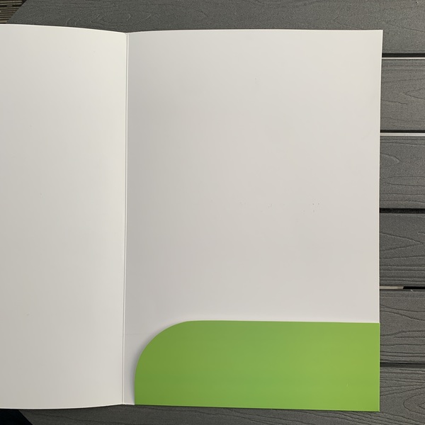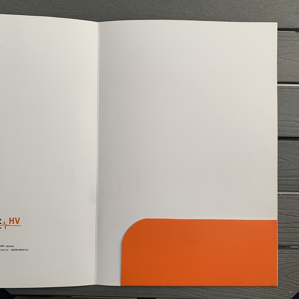 Ud. puede decidir si quiere su carpeta con o sin bolsillo y si quiere que éste incluya o no un tarjetero (perfecto para tarjetas de presentación).